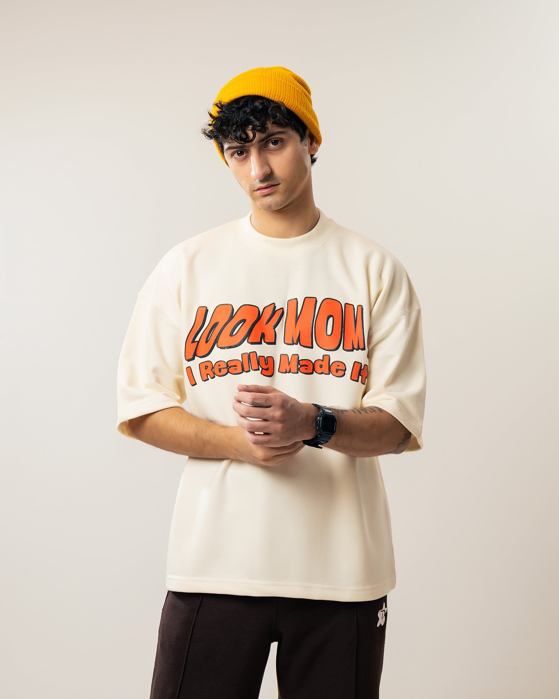 - The 'I Made it' Boxy Oversized Tee - Oat Milk